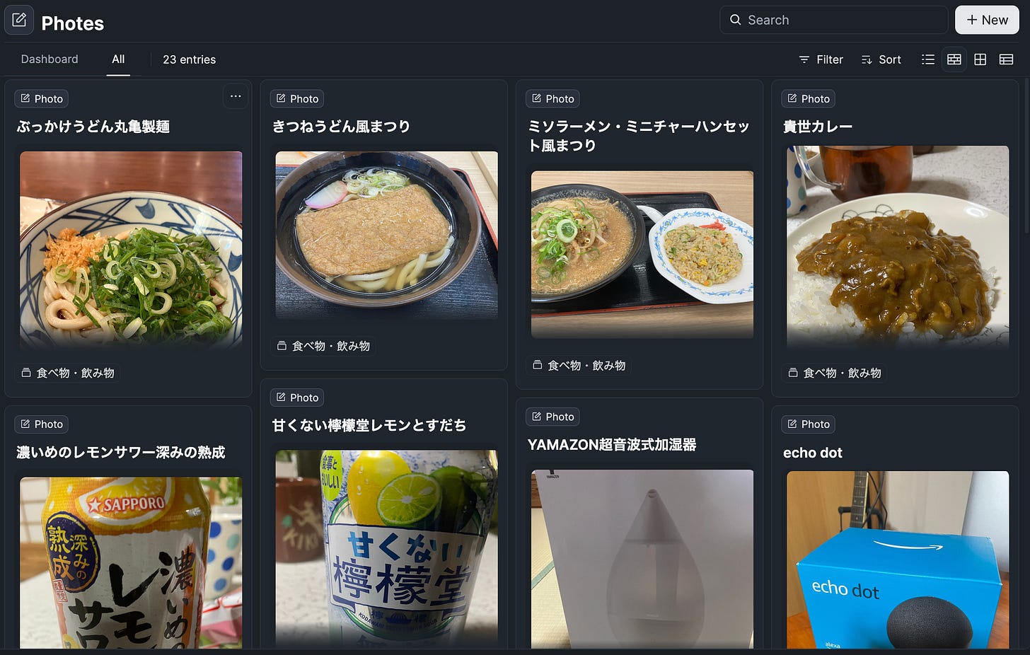 たとえば、CapacitiesのPhotoを開くと以下のような画面になるのですが、