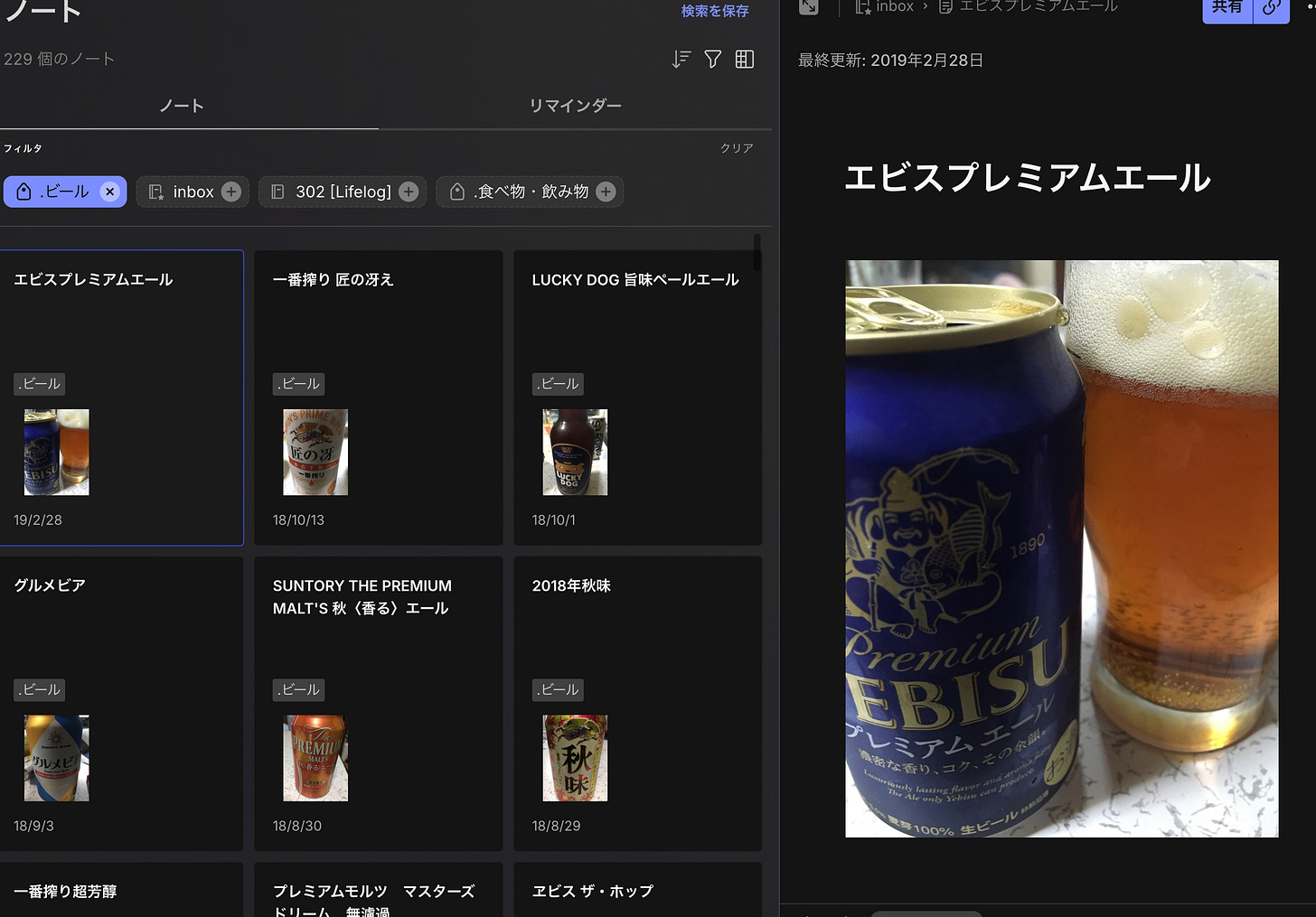 現状のUIだと、サムネイルが小さくなっていてCapacitiesほどの「いいな」感がないのが残念ではありますが、ともかくこうした「記録」は役に立つ、立たない以前の「いい感じ」に貢献していたことは間違いありません。キーワードで言えば「ライフログ」ですが、この言葉も内実が検討されないまま流行し、そして廃れていった感覚があります。